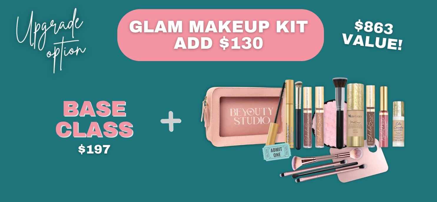 Glam Makeup Kit Upgrade ($863 value) includes the Base Class inclusions, PLUS: