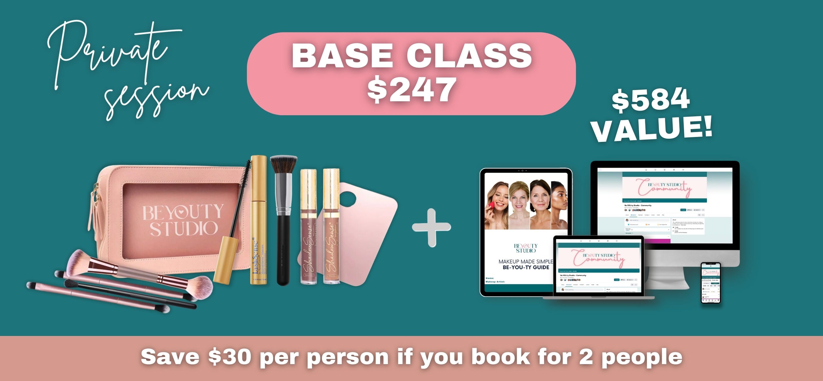 Glam Makeup Kit Upgrade ($863 value) includes the Base Class inclusions, PLUS: